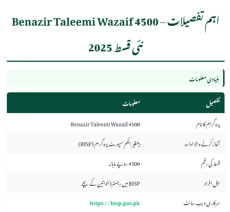 The Benazir Taleemi Wazaif 4500 New Installment 2025 is a major step toward an educated and empowered Pakistan.