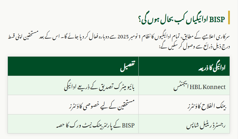 BISP payments will restart from November 1, 2025, after maintenance is completed.