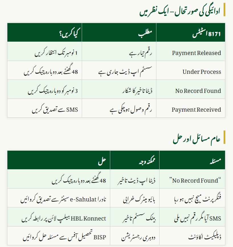 | Duplicate account detected | Double registration | Visit nearest BISP Tehsil Office |
