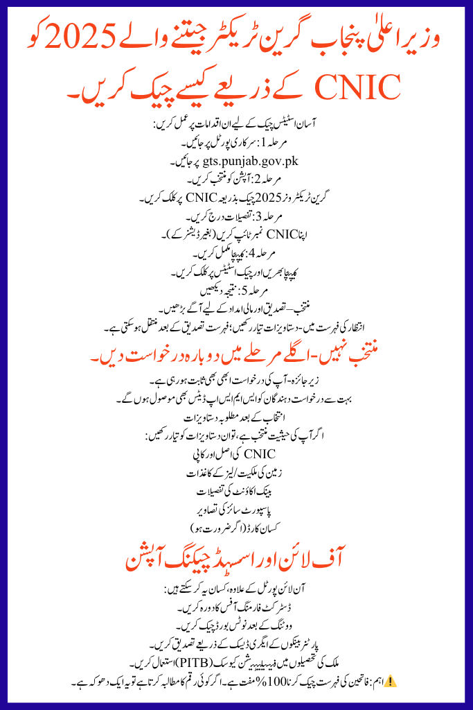 If you applied, check your CNIC nowadays at gts.punjab.gov.pk and be part of Punjab’s green farming revolutions.