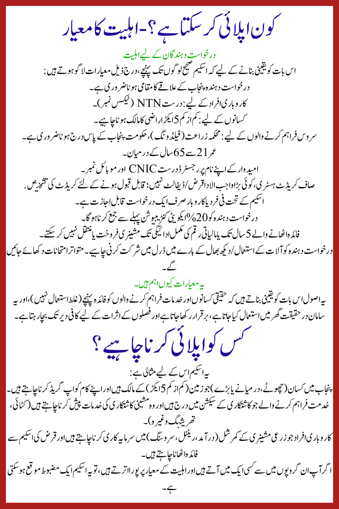 To ensure the CM Punjab High‑Tech Farm Mechanization Finance Program reaches the right people, following criteria apply: