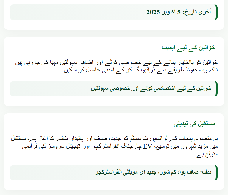 This scheme is a game-changer for women in Punjab. With a reserved quota of taxis, financial support, and government-paid fees, women can safely enter the driving profession and earn a stable income. Beyond employment, this initiative increases women’s visibility in the workforce and contributes to gender equality in Pakistan.
