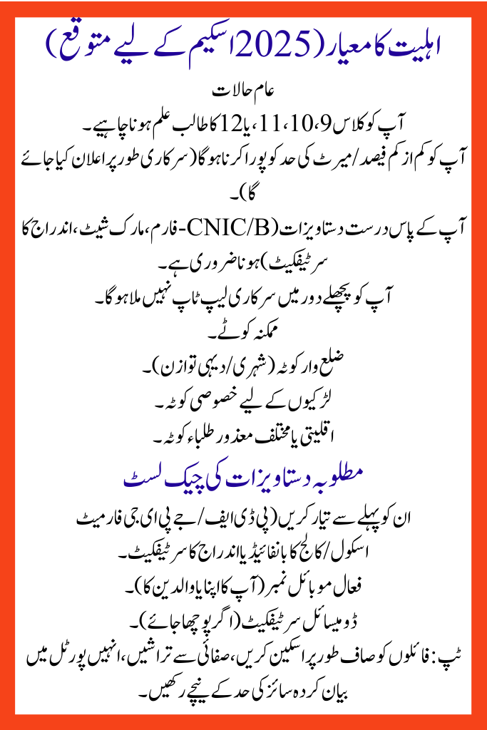 Eligibility Criteria For Govt Laptop Scheme for Matric & Intermediate Students (Expected for 2025 Scheme)