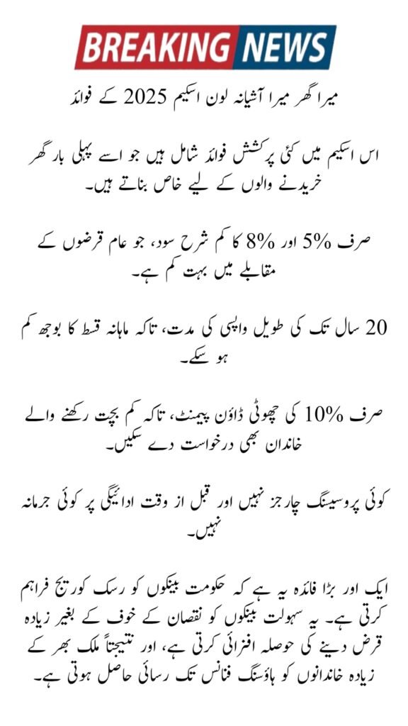 Housing is a basic need, but due to high prices, many families are unable to buy a home. This scheme directly addresses that issue by providing low markup, long repayment years, and low down payment. It especially helps families who live in rented houses because often rent is higher than the installment of this scheme. In 2025, with the growing population and rapid urbanization, Mera Ghar Mera Ashiana Loan Scheme 2025 is one of the most important initiatives of the government to provide relief to common people.