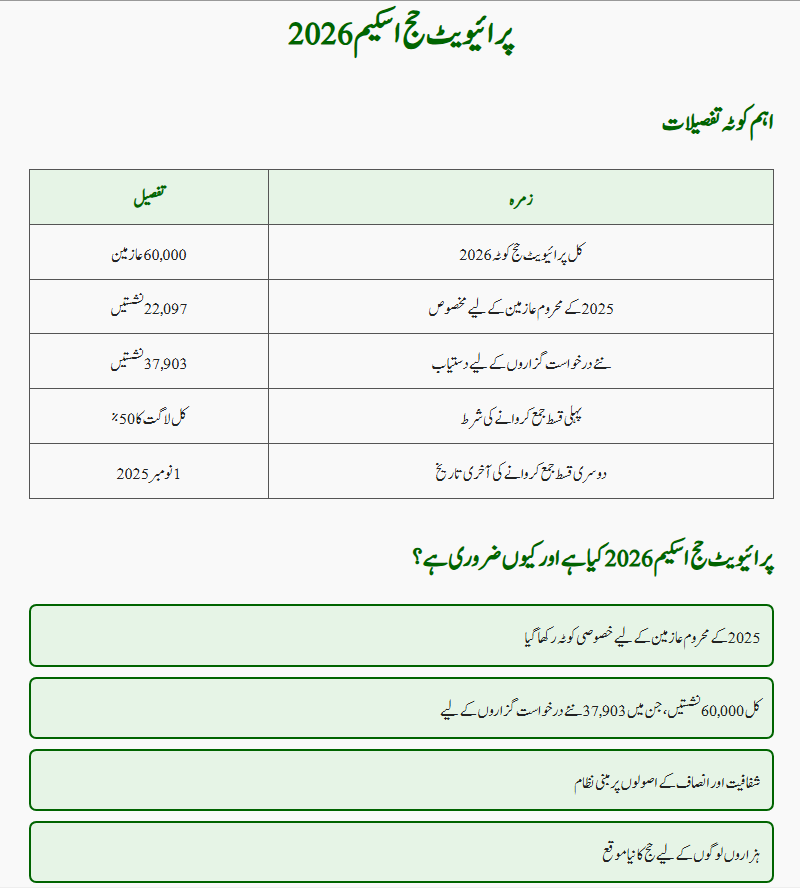 | Total Private Hajj Quota 2026 | 60,000 pilgrims |