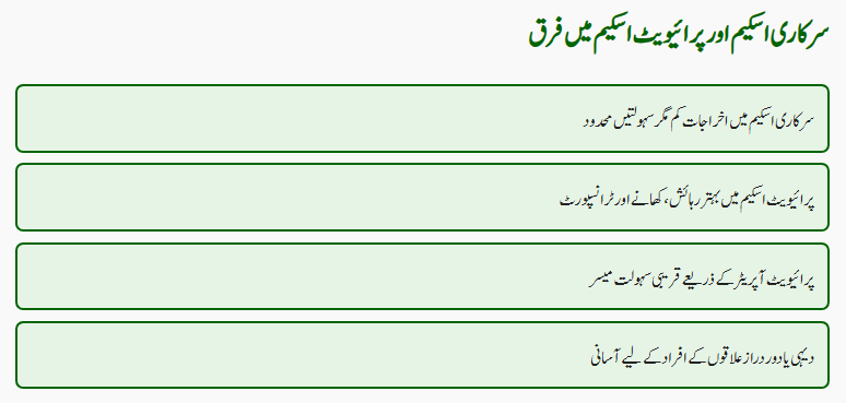 - Private Scheme: Offers flexible packages, better accommodation, and more personalized services, but at higher costs.