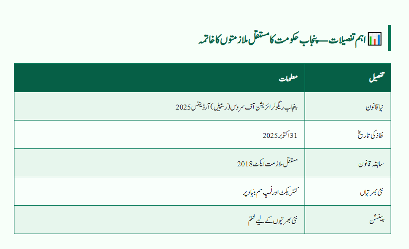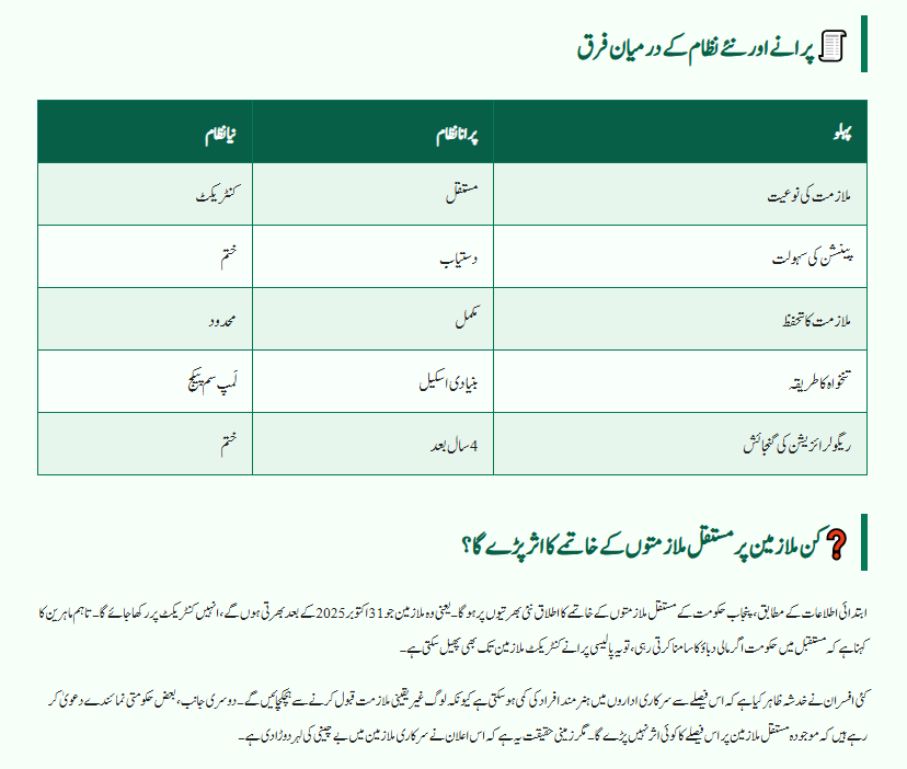 According to early reports, the Punjab government’s end of permanent jobs applies mainly to new hires after October 31, 2025. Those already employed under permanent contracts are expected to remain unaffected — at least for now.