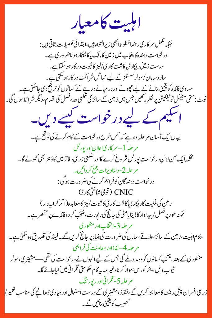 Once approved, selected farmers will receive the support they applied for—machinery, solar-tube well, watercourse paving, etc. The work will be carried out under government supervision.
