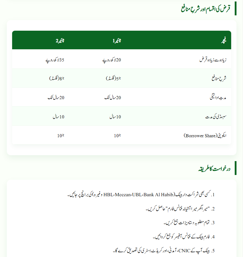 SBP Mera Ghar Mera Ashiana Scheme 2025 – Loan Tiers and Markup Rates