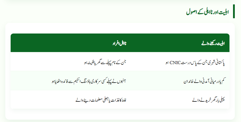 | Pakistani citizens with a valid CNIC | Individuals who already own a house or flat |