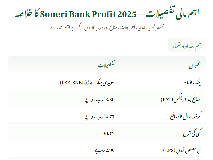 Quick Financial Summary — Soneri Bank Profit 2025 at a Glance
