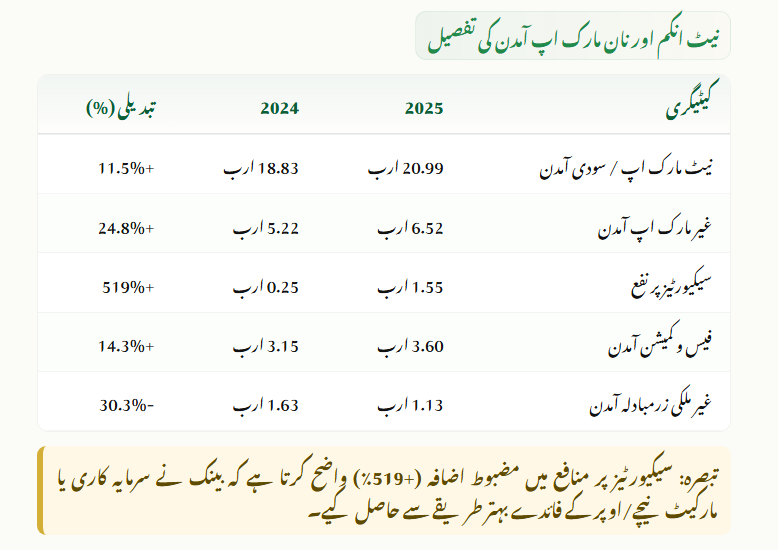 | Net Markup / Interest Income | Rs 20.99bn | Rs 18.83bn | +11.5% |