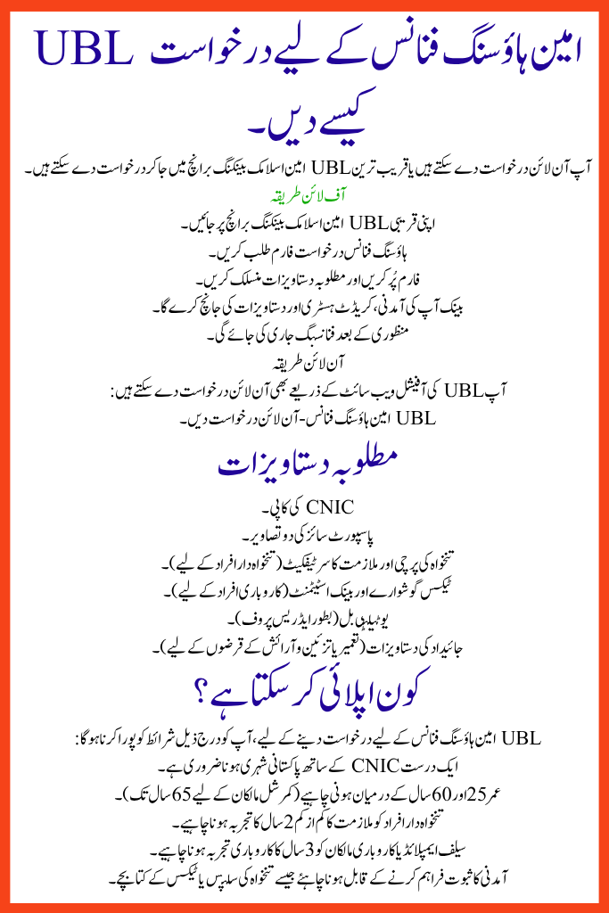 If you are groundwork to get your dream home, visit your nearest UBL Ameen Islamic branch or apply connected today to check your aptness and backing interests.