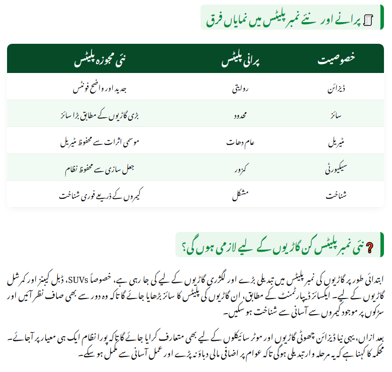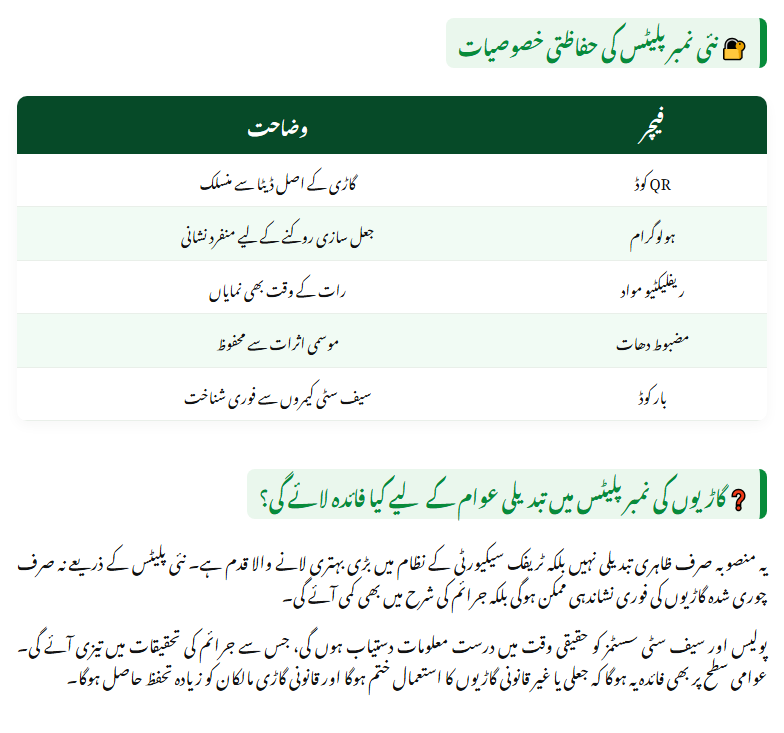 The main reason for changes in vehicle number plates is that the older designs are often unclear and difficult for Safe City cameras to read — making vehicle tracking, crime detection, and law enforcement more difficult.